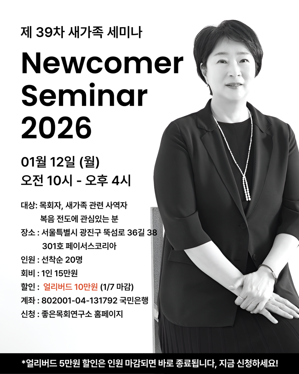 제 39차 새가족 세미나가 드디어 오픈합니다!